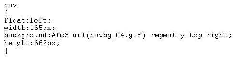 This I-ITML5 and CSS code directs the sidebar background image to: