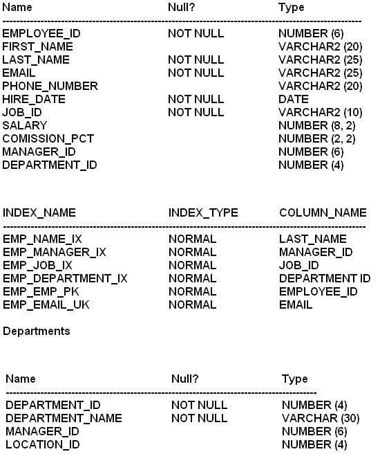 Examine the Exhibit to view the structure of and indexes for the EMPLOYEES and DEPARTMENTS tables: