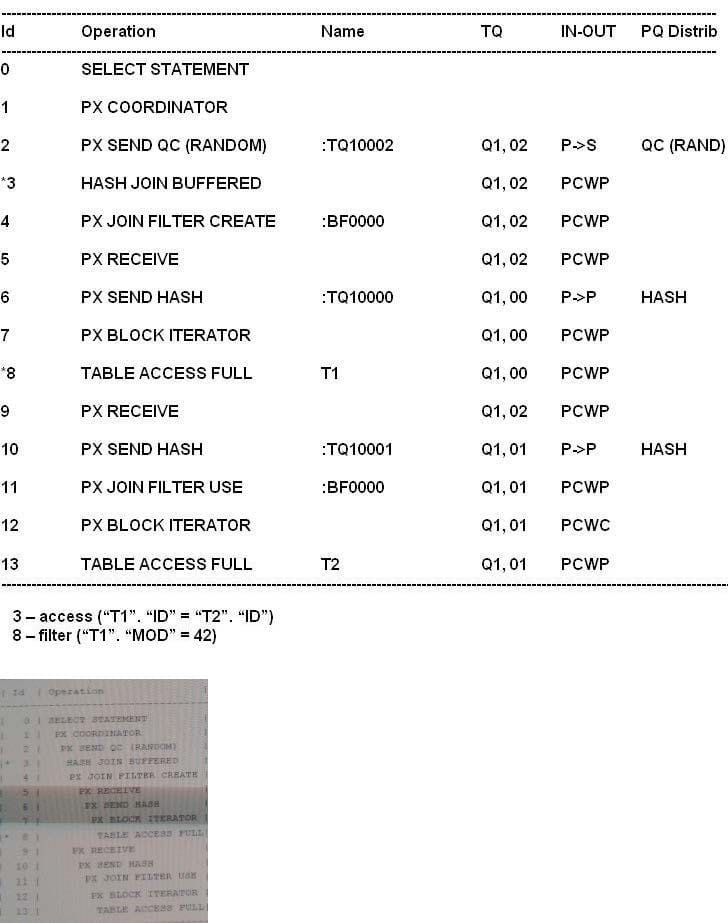 E. The bloom filter is created in parallel by the set of parallel execution processes that later perform join.