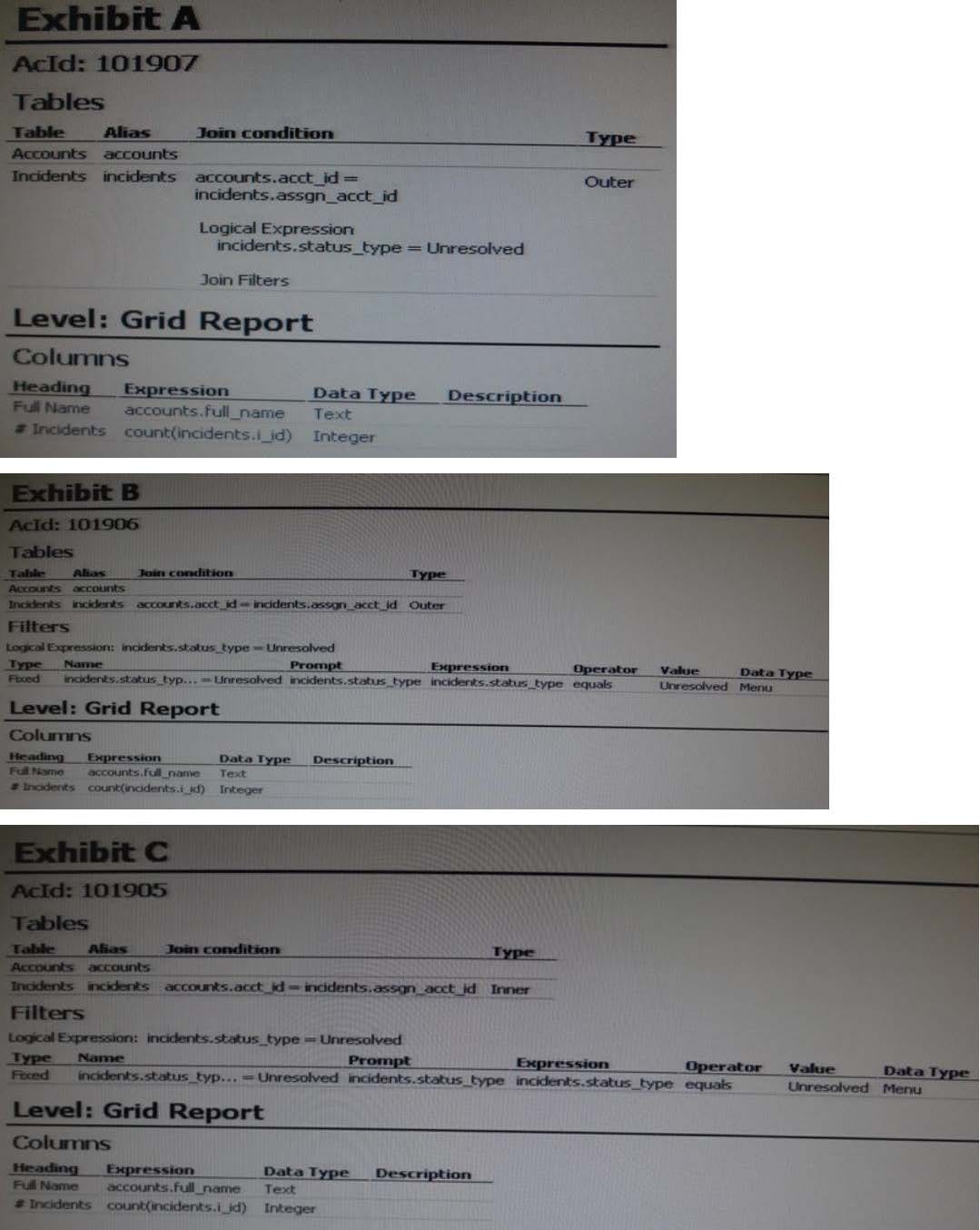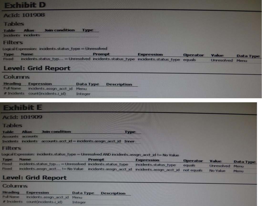 Your manager asks youto create a report that showsevery Staff Account and how manyopen incidentshave been assignedto them.Which report definitionmeets this criteria?