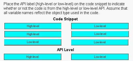 Place the API label (high-level or low-level) on the code snippet to indicate whether or not the code is from the high-level or low-level API. Assume that all variable names reflect the object type used in the code.