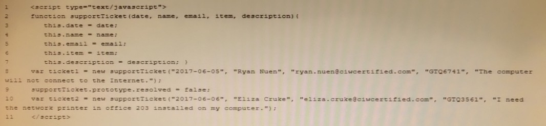 D. it add the property resolved to all instances instantiated custom supportTicket object ticket1 and ticket2.