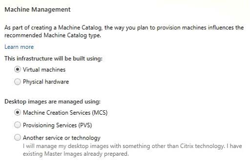 Which two elements are required in order for a Citrix Engineer to create a machine catalog using the XenDesktop Setup Wizard in the Provisioning Services Console? (Choose two.)