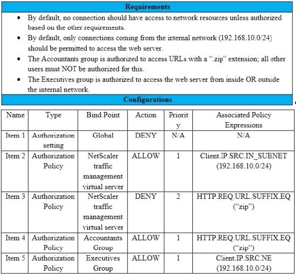 Scenario: A Citrix Architect needs to assess an existing NetScaler configuration. The customer recently found that certain user groups were receiving access to an internal web server with an authorization configuration that does NOT align with the designed security requirements.