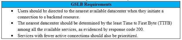 Which GSLB algorithm or method should the architect use for the deployment, based on the stated requirements?