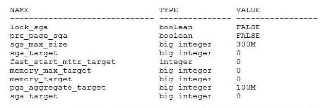 An Automatic Database Diagnostic Monitor (ADDM) finding in your production database reports that the shared pool is inadequately sized. You diagnose that this is due to the different kinds of workloads and this occurs only during peak hours. The following are the parameter settings for the database instance: You want to balance the memory between the System Global Area (SGA) components depending on the workload.