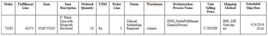 B. Fulfillment Line warehouse C. Fulfillment Line scheduled ship date