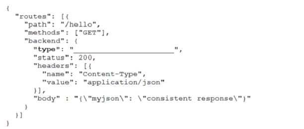 You are developing a distributed application and you need a call to a path to always return a specific JSON content deploy an Oracle Cloud Infrastructure API Gateway with the below API deployment specification.