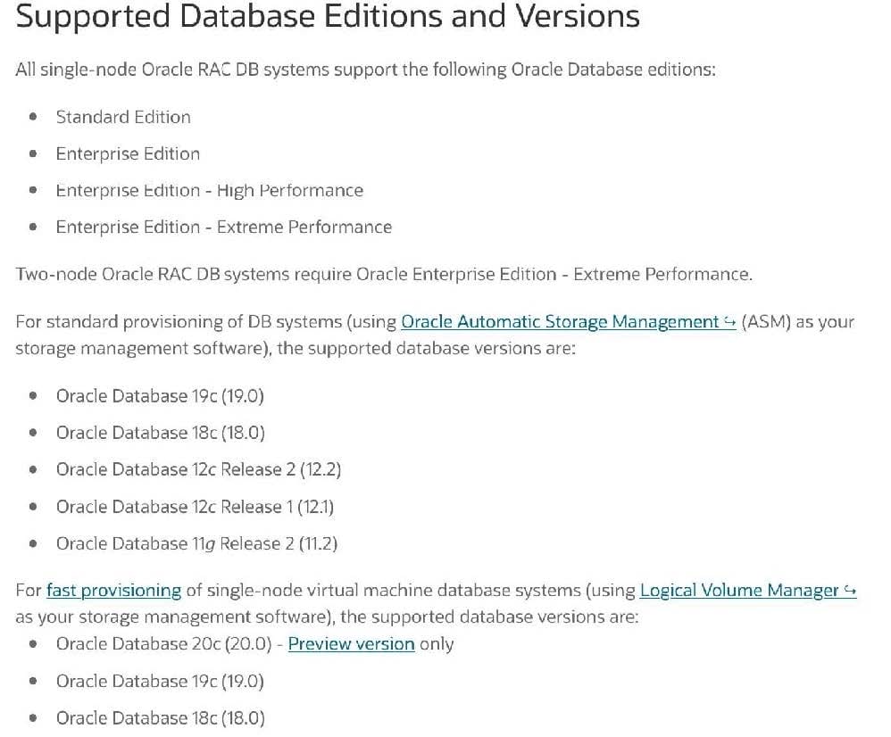 A. Support for RAC DB systems