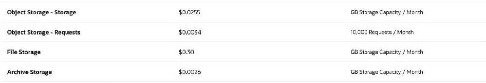 A. Oracle Cloud Infrastructure Object Storage (standard tier)