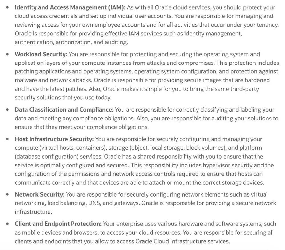 Which statement about the Oracle Cloud Infrastructure (OCI) shared-security model is true?
