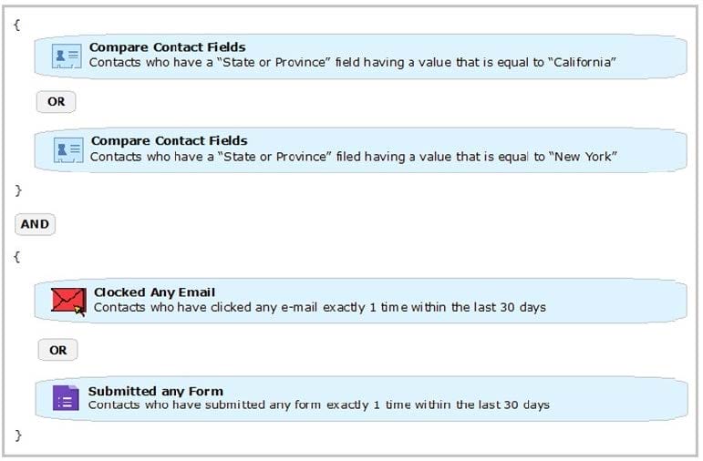 A. A contact in New York who clicked an email and submitted a form one time 14 days ago.