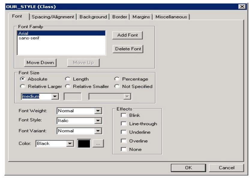 B. In the fluid user interface, font color is not set on the style definition. The current branding theme is what determines the font color for the fluid user interface display