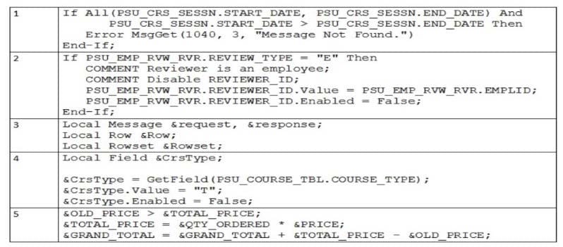 Which two PeopleCode excerpts contain syntax errors? (Choose two.)