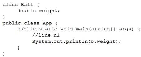 Which code fragment can be inserted at line n1 to enable the code to print 0.0?