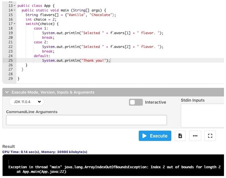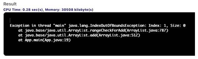 C. An ArrayIndexOutofBoundsException is thrown at run time.
