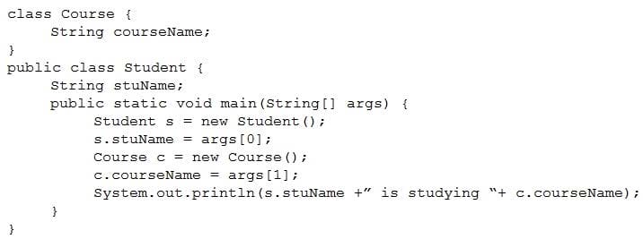 A. The commands: javac Student.java java Student Richard William Java throw an error about a missing Course.class file.