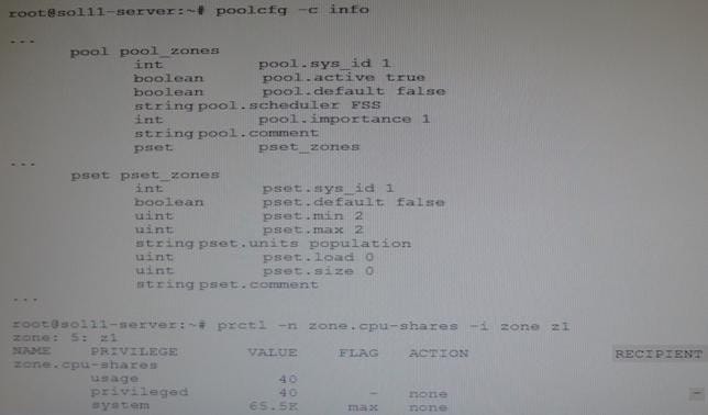 You have a server that has two zones configured. These zones use the pool named pool_zones. Examine the following configuration information: