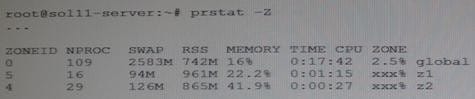 The system has four CPUs. Assume that both zones are under heavy load. Examine the following partial output: