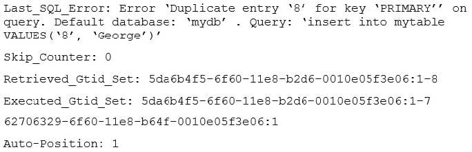 E. SET GTID_EXECUTED="5da6b4f5-6f60-11e8-b2d6-0010e05f3e06:8";