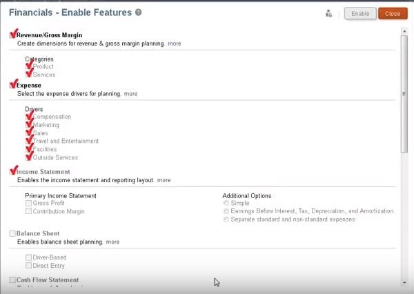 Which four options must be enabled to properly configure the Cash Flow Statement this way? (Choose four.)