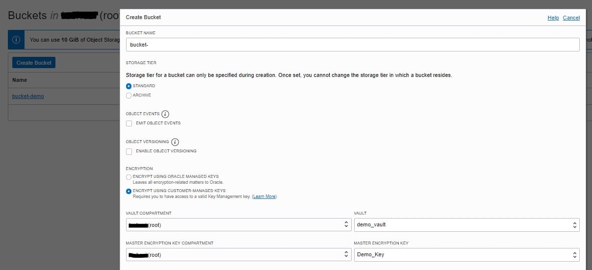 D. When you create a new OCI Object Storage bucket through OCI console, you need to choose "ENCRYPT USING CUSTOMER-MANAGED KEYS" option.
