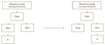 Your customer has gone through a recent reorganization. As part of this change, they are organizing their Oracle Cloud Infrastructure (OCI) compartment structure to align with the company's new organizational structure. (Refer to the exhibit)