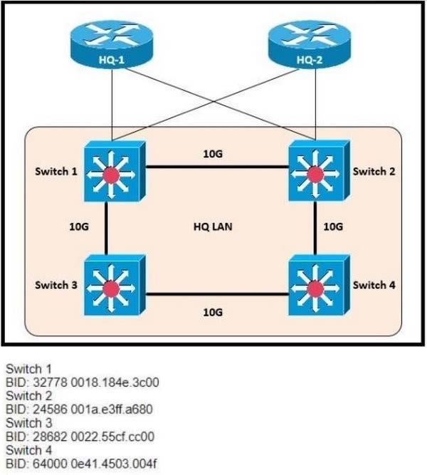 Refer to the exhibit. Which switch becomes the root of the spanning tree for VLAN 110?