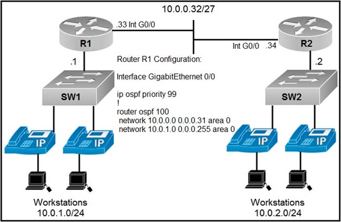 An engineer must configure router R2 so it is elected as the DR on the WAN subnet.