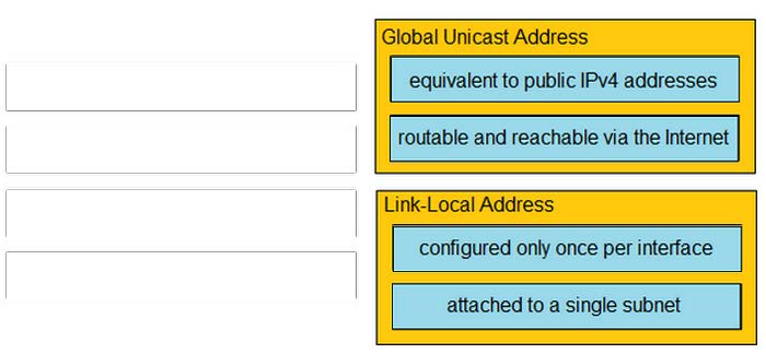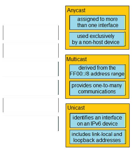 Drag and drop the IPv6 address type characteristics from the left to the right.