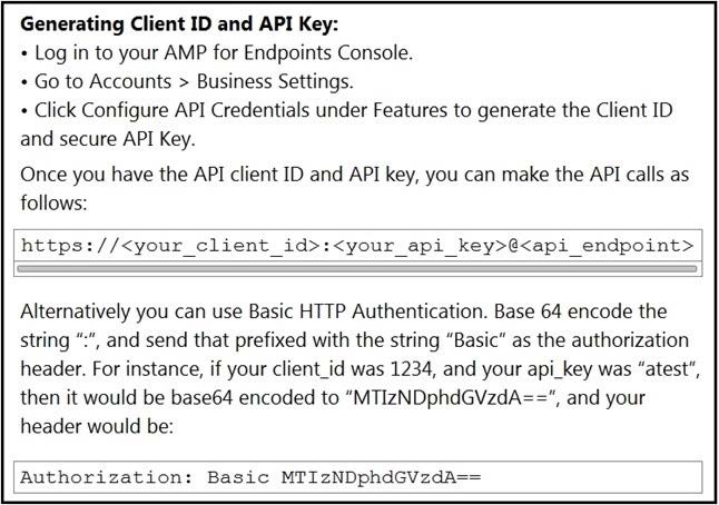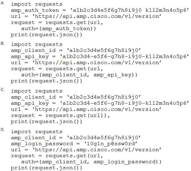 The documentation outlines how to use credentials for the AMP API. Which script successfully performs an API call using basic authentication?