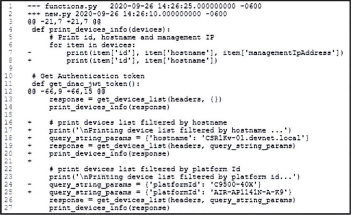 An engineer is comparing two files by using the unified diff format. Which cade snippet belongs to the new.py file?