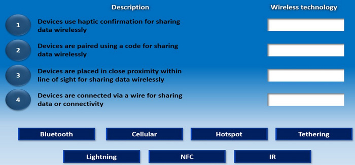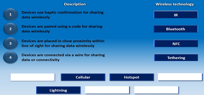 Drag and drop each mobile technology to the description of its use. Some answers will not be used.