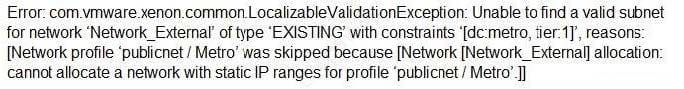 While deploying a virtual machine cloud template, an administrator encounters the following error: