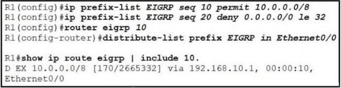 D. Modify the ip prefix-list EIGRP seq 10 permit 10.0.0.0/8 le 32 command.