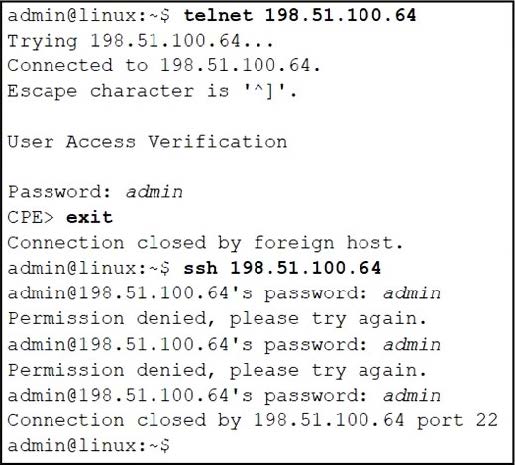 An administrator can log in to the device using Telnet but the attempts to log in to the same device using SSH with the same credentials fail. Which action resolves this issue?