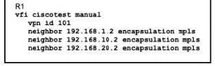 An organization is running H-VPLS on a network comprising four routers in a hub-and-spoke topology with R1 as the hub An engineer added a new spoke with multiple VCs to the network, and now traffic cannot flow properly How should the engineer update the configuration on R1 to correct the problem?