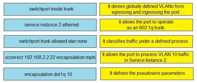 Refer to the exhibit. Drag and drop the EVC configuration items from the left onto the correct descriptions on the right.