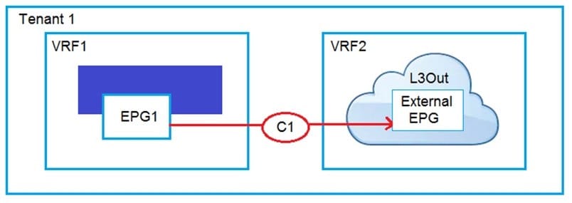 Refer to the exhibit. An engineer must have communication between EPG1 in VRF1 and External EPG in VRF2. Which three actions should be taken for the defined subnets in the L3Out External EPG to accomplish this goal? (Choose three.)