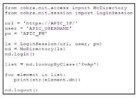 A Python script using ACI Cobra SDK has been constructed. What is the result when running this script?