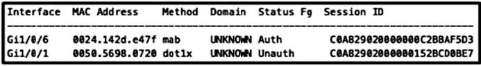 B. show authentication sessions Interface Gil/0/1 output