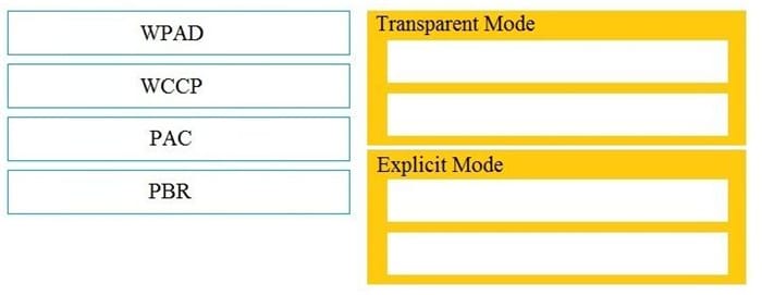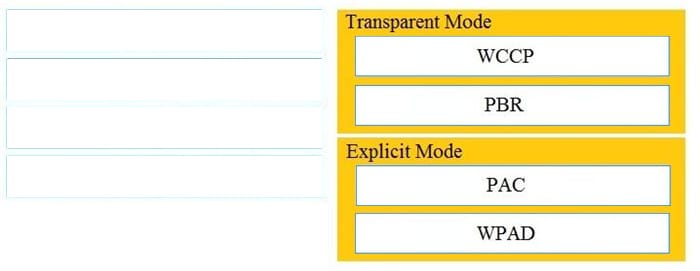 Drag and drop the Cisco WSA methods from the left onto the correct deployment modes on the right.