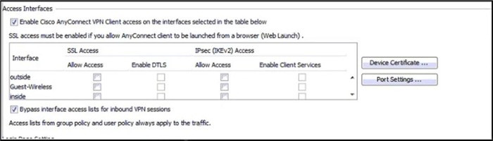 C. Bypass interface access lists for inbound VPN sessions must be unchecked.