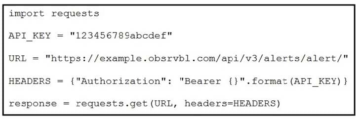 A security engineer created a script and successfully executed it to retrieve all currently open alerts. Which print command shows the first returned alert?