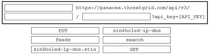 Drag and drop the items to complete the ThreatGRID API call to return a curated feed of sinkholed-ip-dns in stix format. Not all options are used.