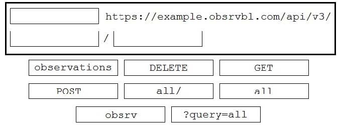 Drag and drop the code to complete the API call to query all Cisco Stealthwatch Cloud observations. Not all options are used.