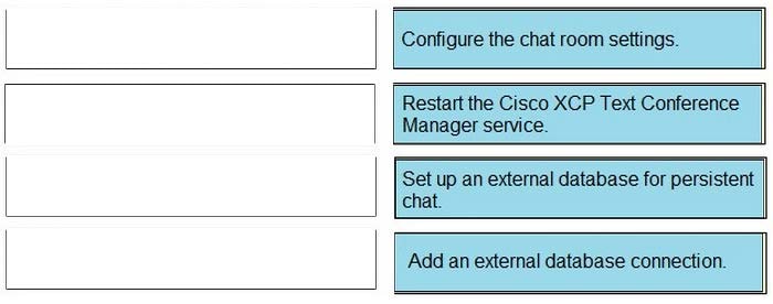 Drag and drop the remaining configuration steps from the left into the correct order on the right to complete the configuration.