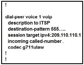 An engineer configures Cisco Unified Border Element to connect the enterprise VoIP network with a SIP telephony provider. Calls are not working in either direction. What must be configured in the dial peer 1 to fix the issue?