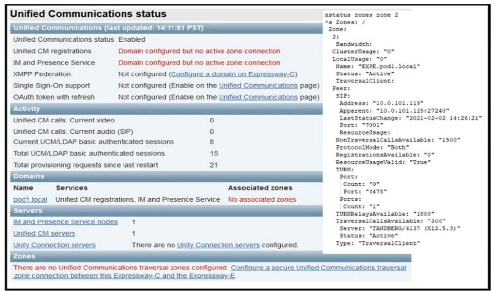 D. Although a traversal client zone exists, there is no Unified Communications traversal client zone. One must be created.