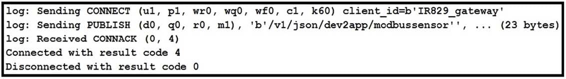 Refer to the exhibit. Based on the MQTT client output, which action should be taken so that the connection to the broker can be established?